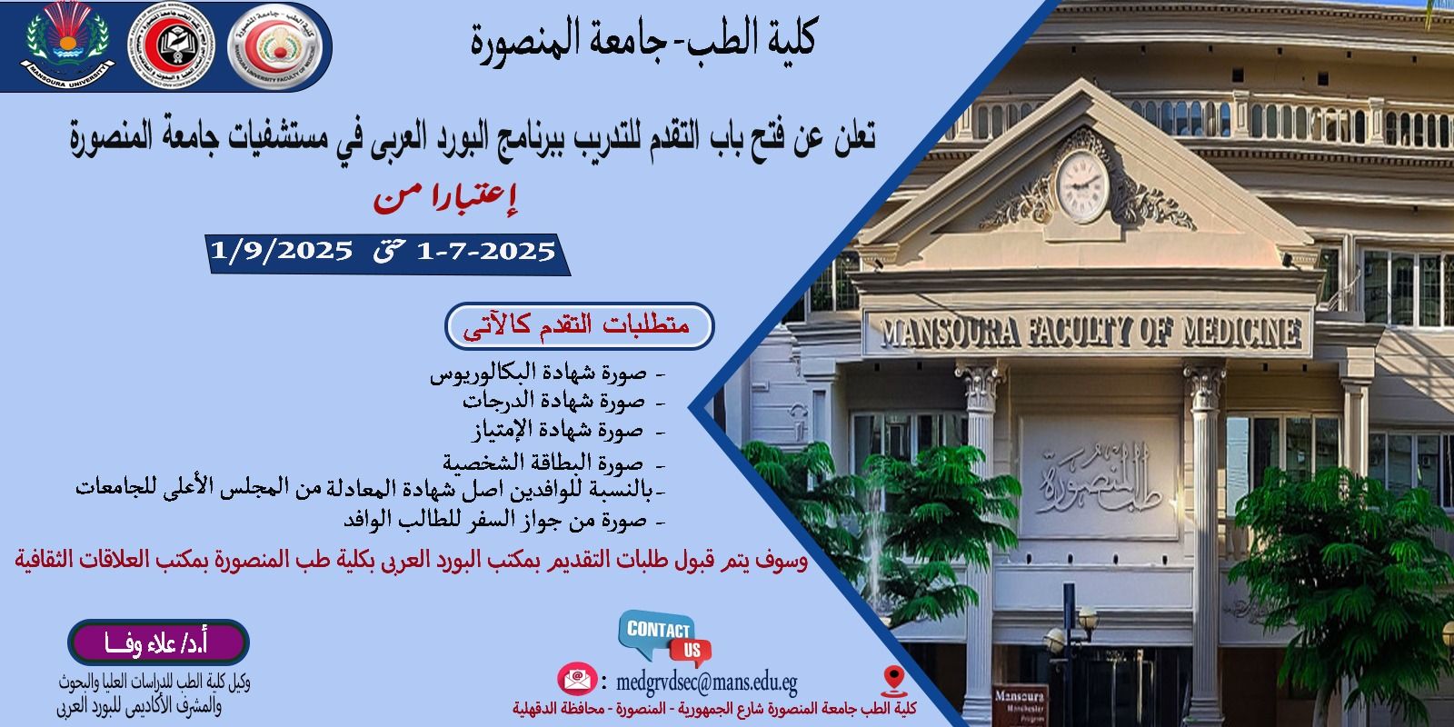 You can get all E-services through the Mansoura University website, where you can choose the portal you want to enter