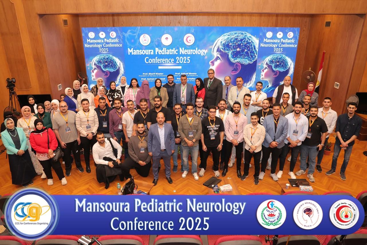 تم بحمد الله انتهاء فعاليات المؤتمر ٣١ لقسم طب الأطفال بكلية طب المنصورة تحت رعاية ا.د. شريف خاطر رئيس الجامعة وا.د. اشرف شومة عميد كلية الطب و برئاسة ا.د. أيمن حماد رئيس القسم مع أعضاء اللجنة المنظمة ا.د. منى حافظ و ا.د. محمد عز و ا.د. سهير يحي. أقيم المؤتمر علي مدار يومي الأربعاء والخميس (٢٦، ٢٧ فبراير ٢٠٢٥) تحت عنوان updates in pediatric practice حيث اشتمل علي ٢٥ محاضرة في تخصصات طب الأطفال المختلفة.