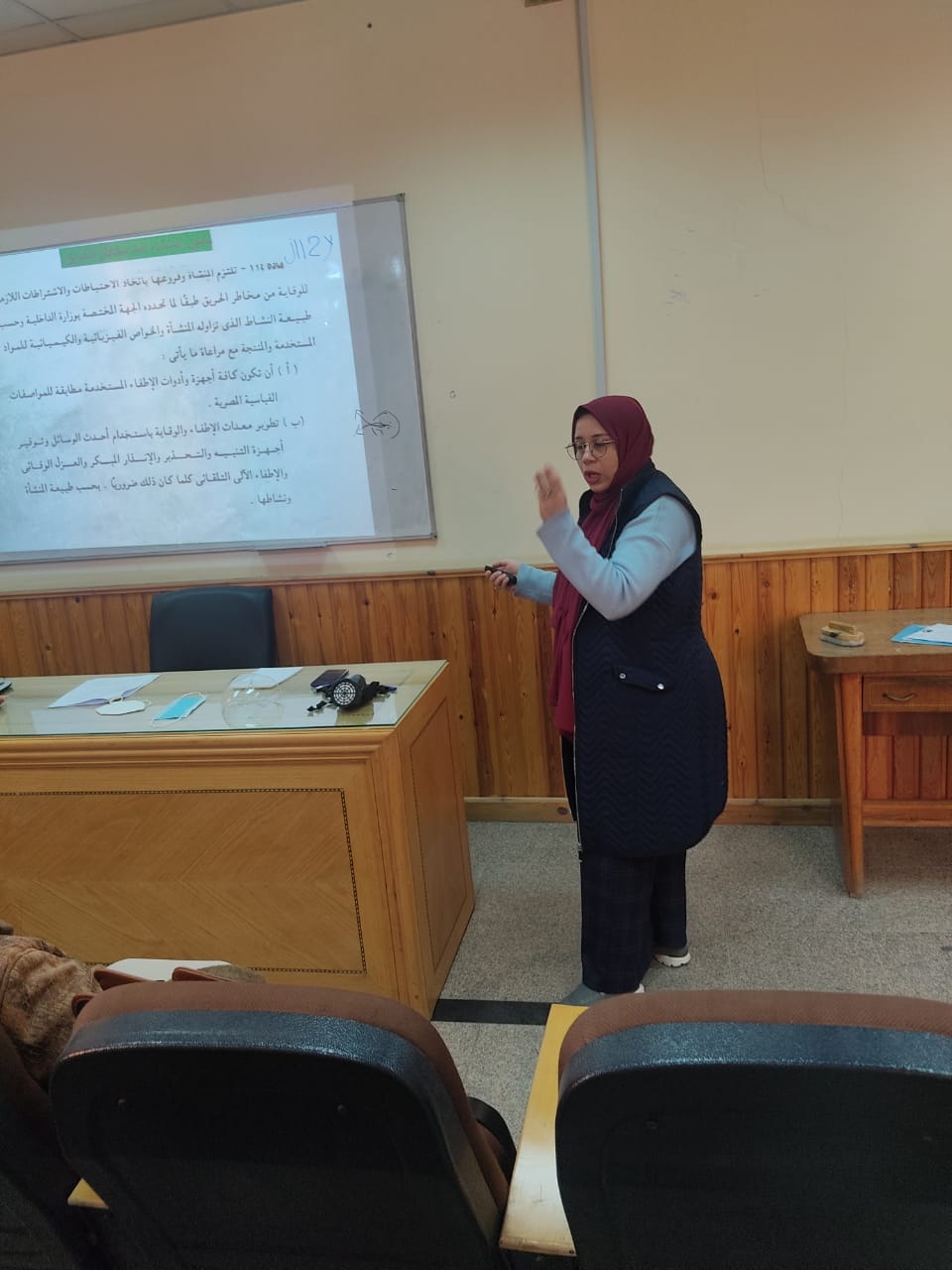 نظمت لجنه السلامه والصحه المهنيه التابعه لقطاع شئون خدمه المجتمع وتنميه البيئه *تدريب السلامه والصحه المهنيه في المعامل