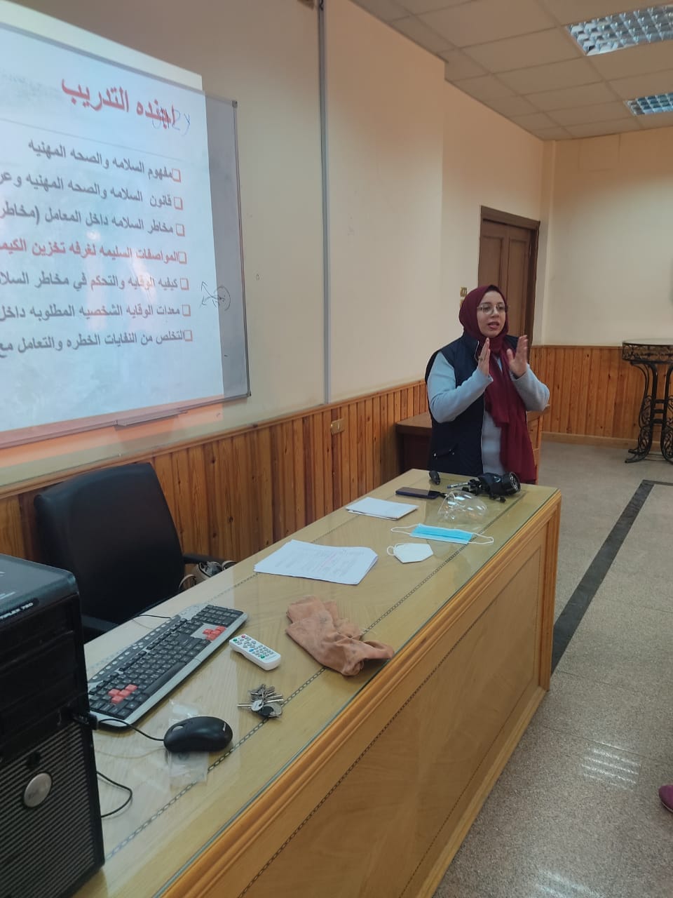 تم عمل التدريب علي اجراءات السلامه والصحه المهنيه للمعامل الساعه 10 ص لعدد 18 من الفنيين واعضاء هيئه التدريس والهيئه المعاونه بقاعه قسم الكيمياء الحيويه