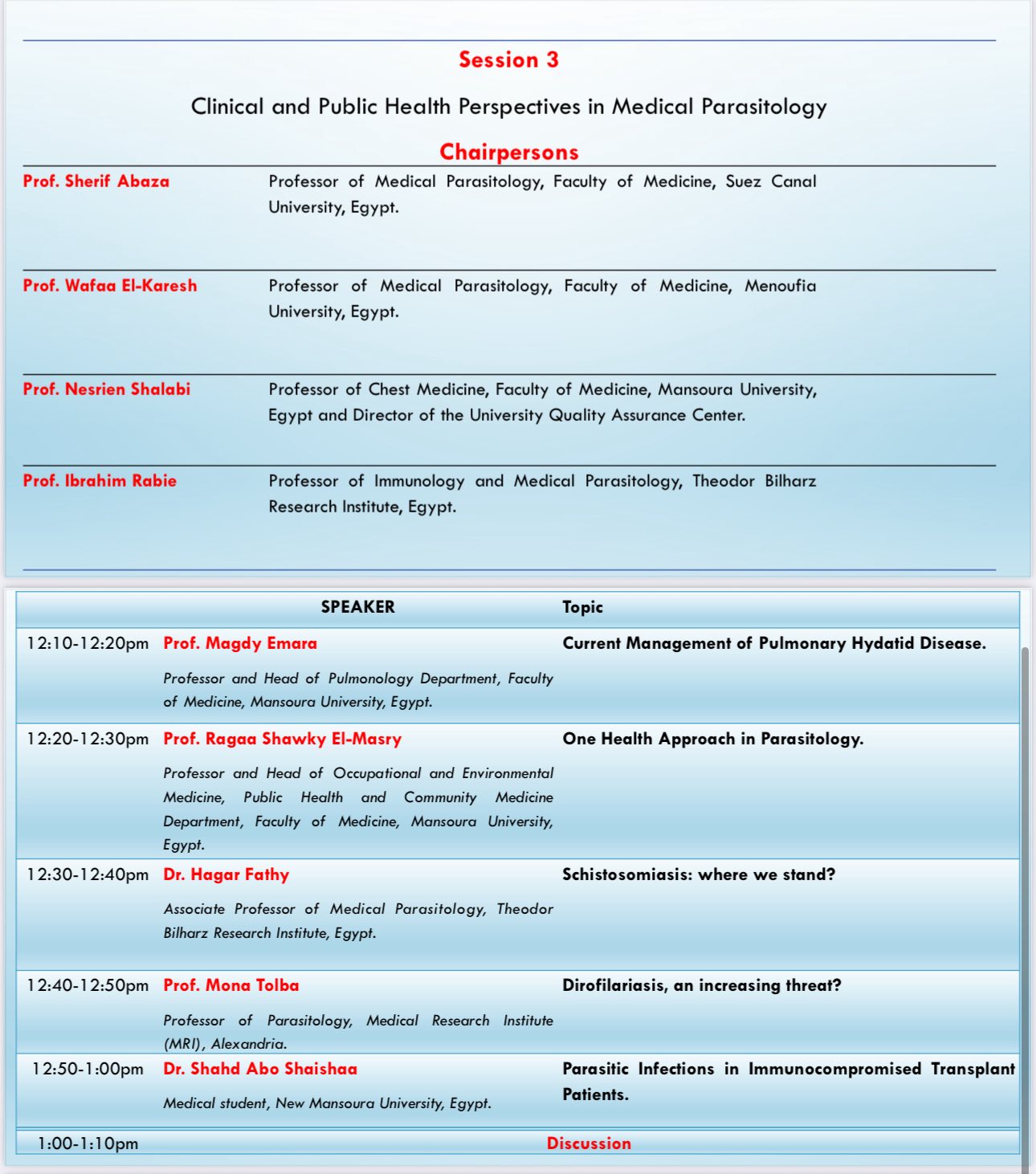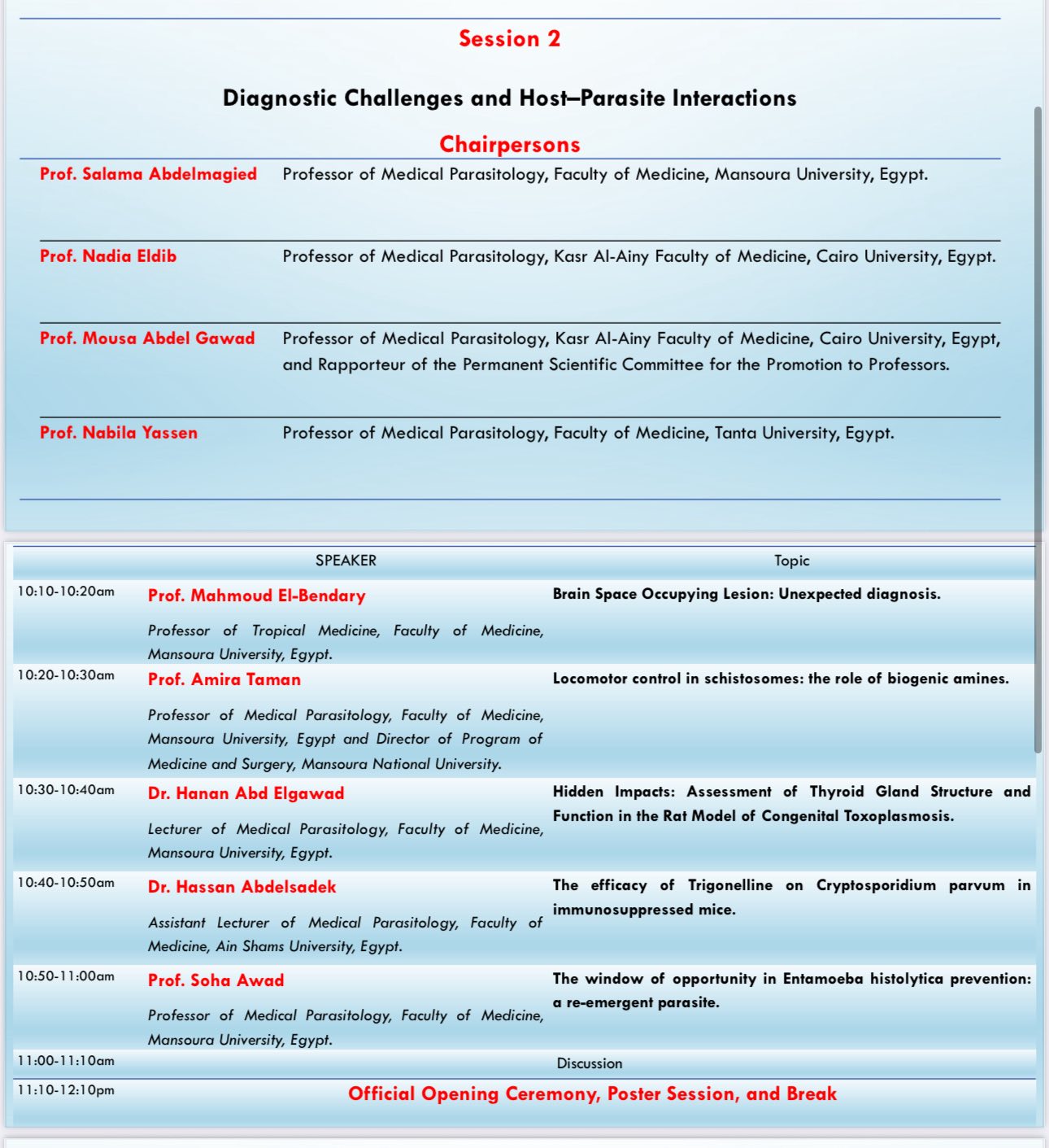 سيجمع هذا المؤتمر الذي يستمر ليوم واحد خبراء وباحثين وممارسين رائدين في مجال علم الطفيليات الطبية لمشاركة أحدث التطورات والنهج المبتكرة والاستراتيجيات العملية لمعالجة الأمراض الطفيلية.