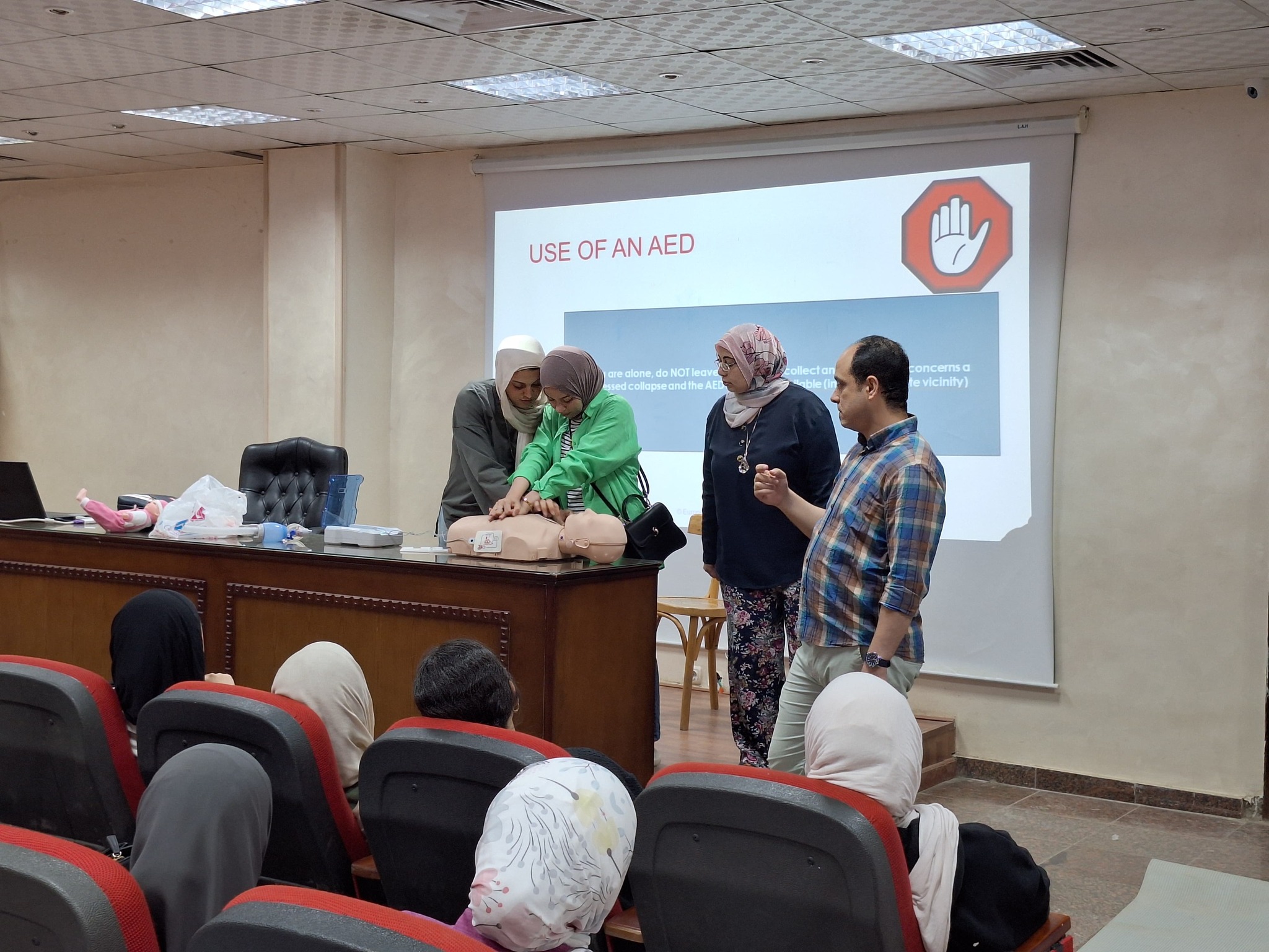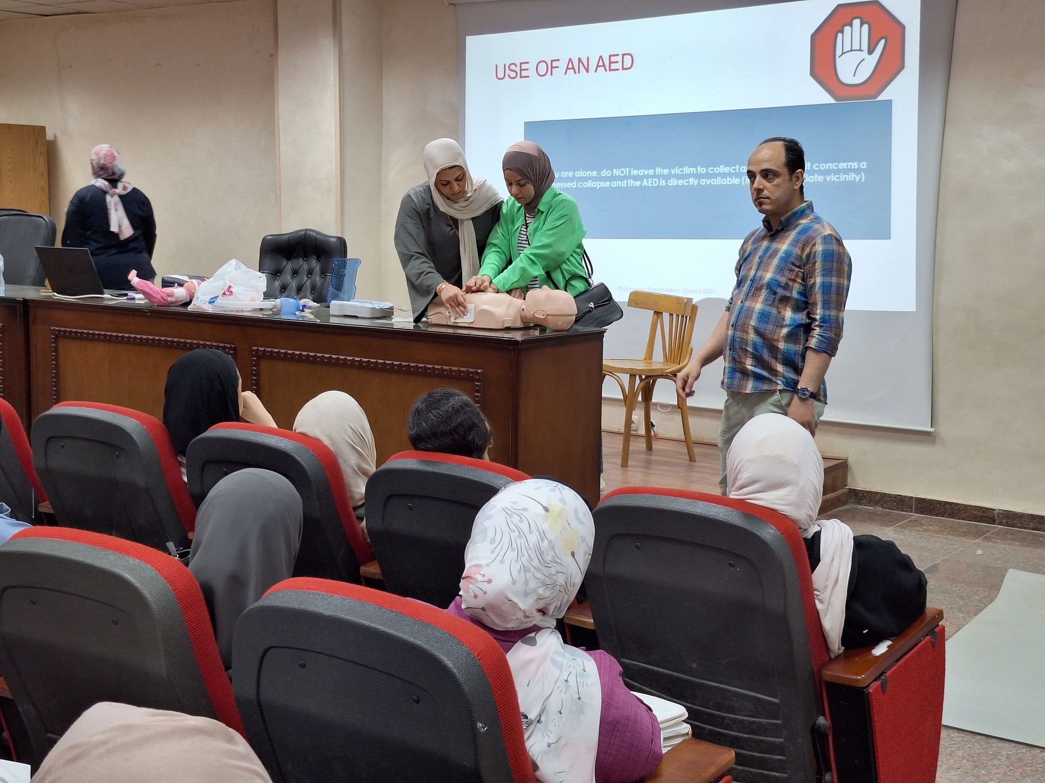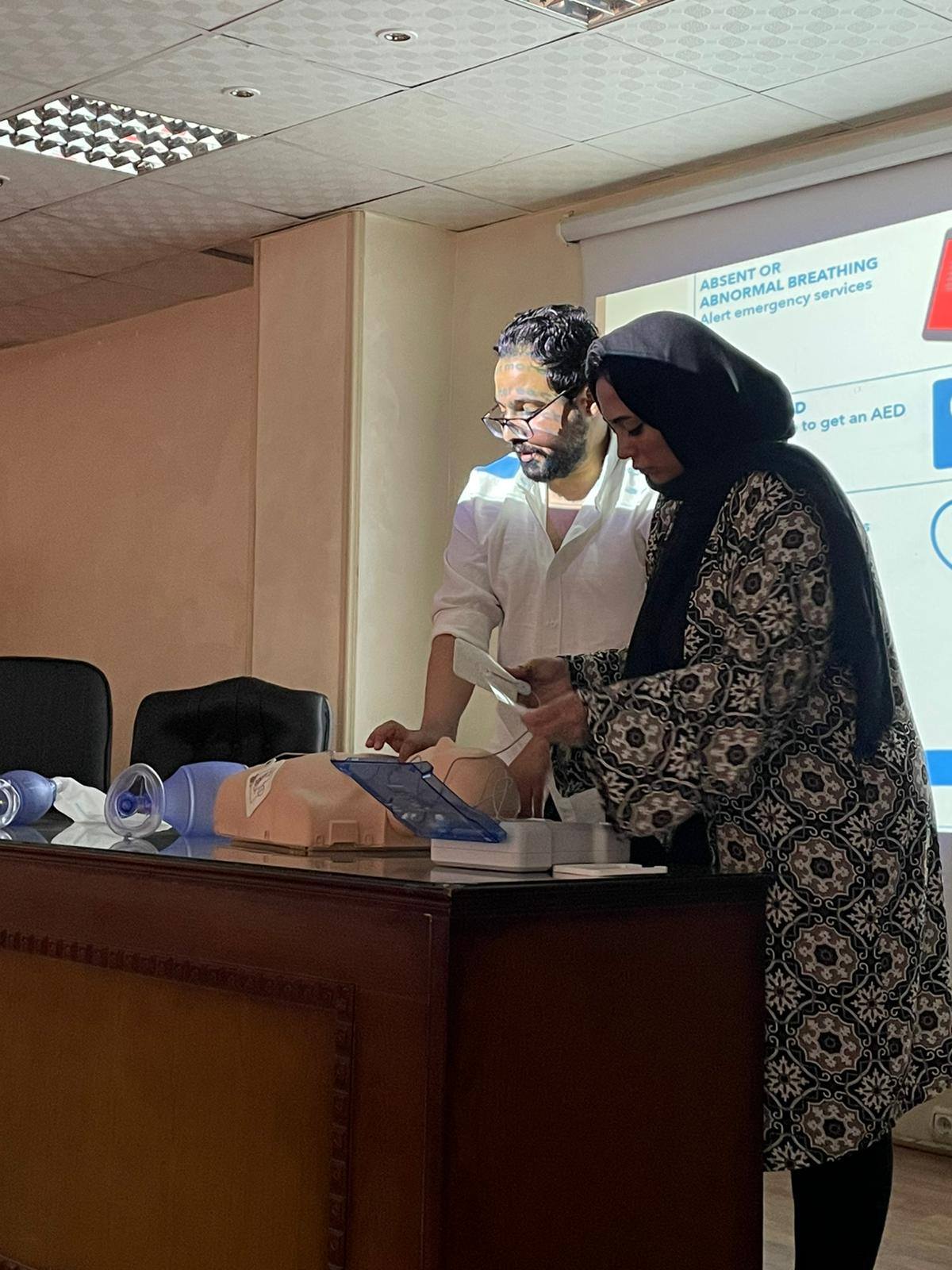 تم عقد دورة تدريبية على مدار ثلاثة أيام لطلاب البرنامج للتدريب على مهارات إنعاش الحياة الأساسية