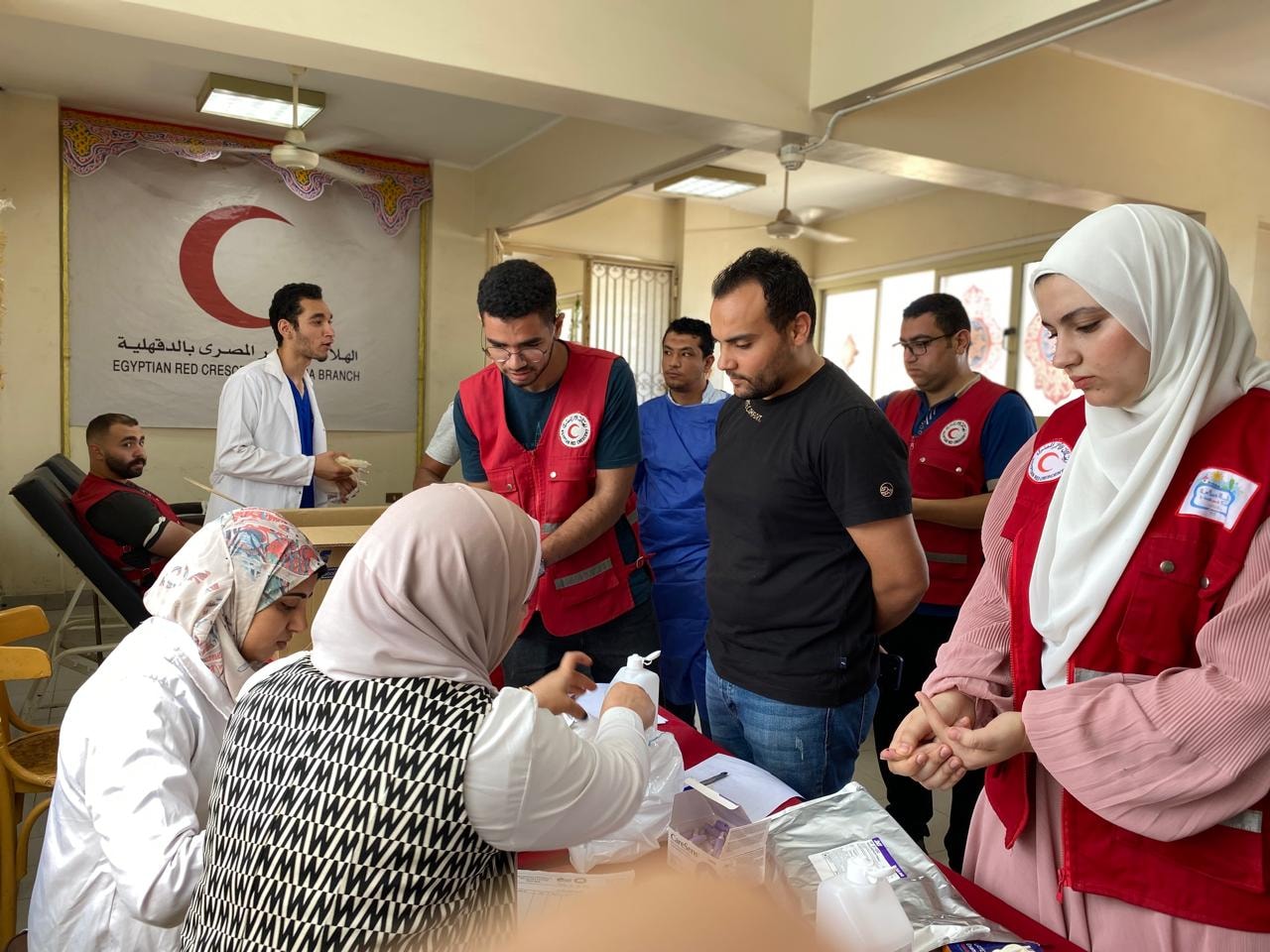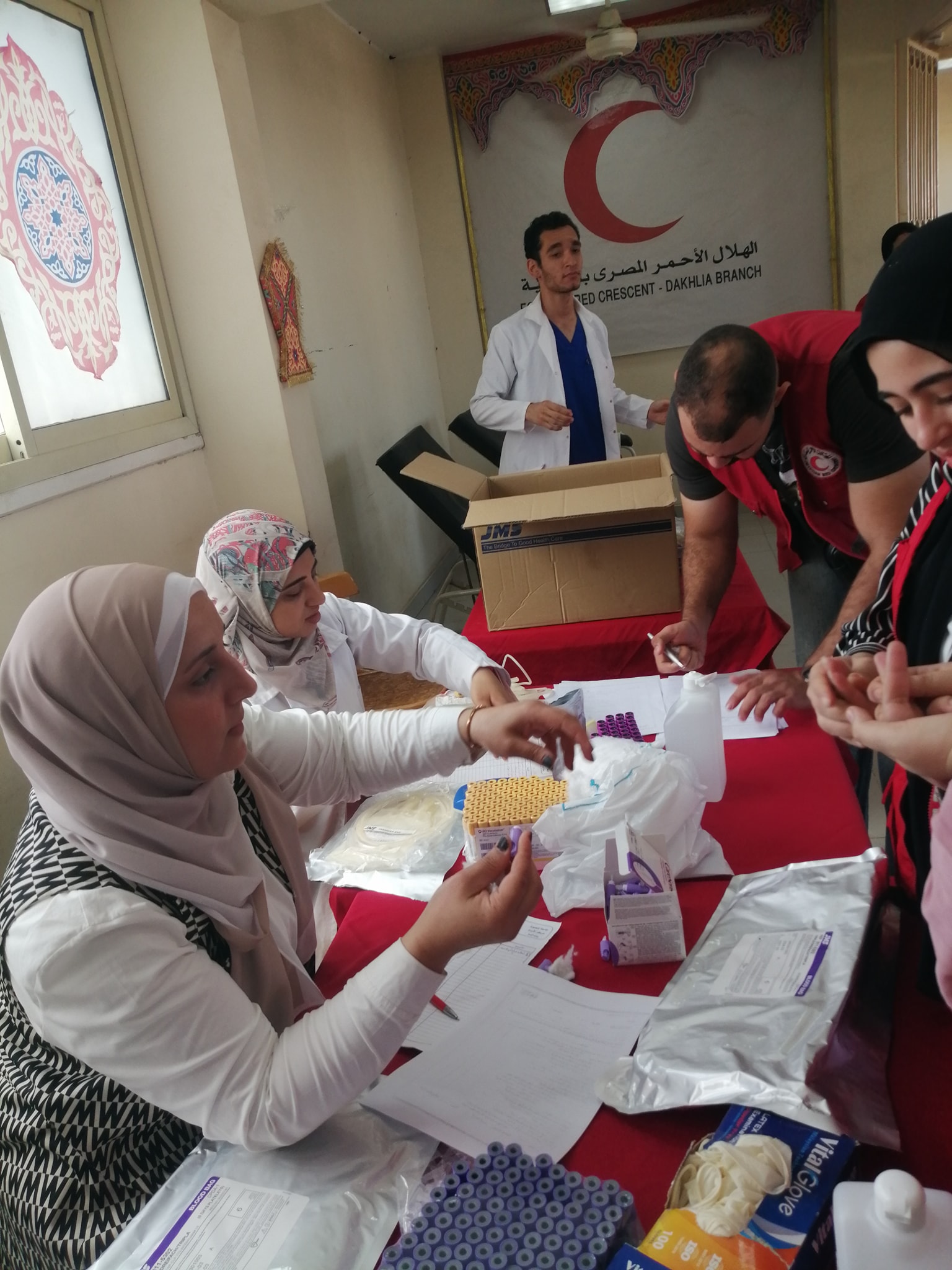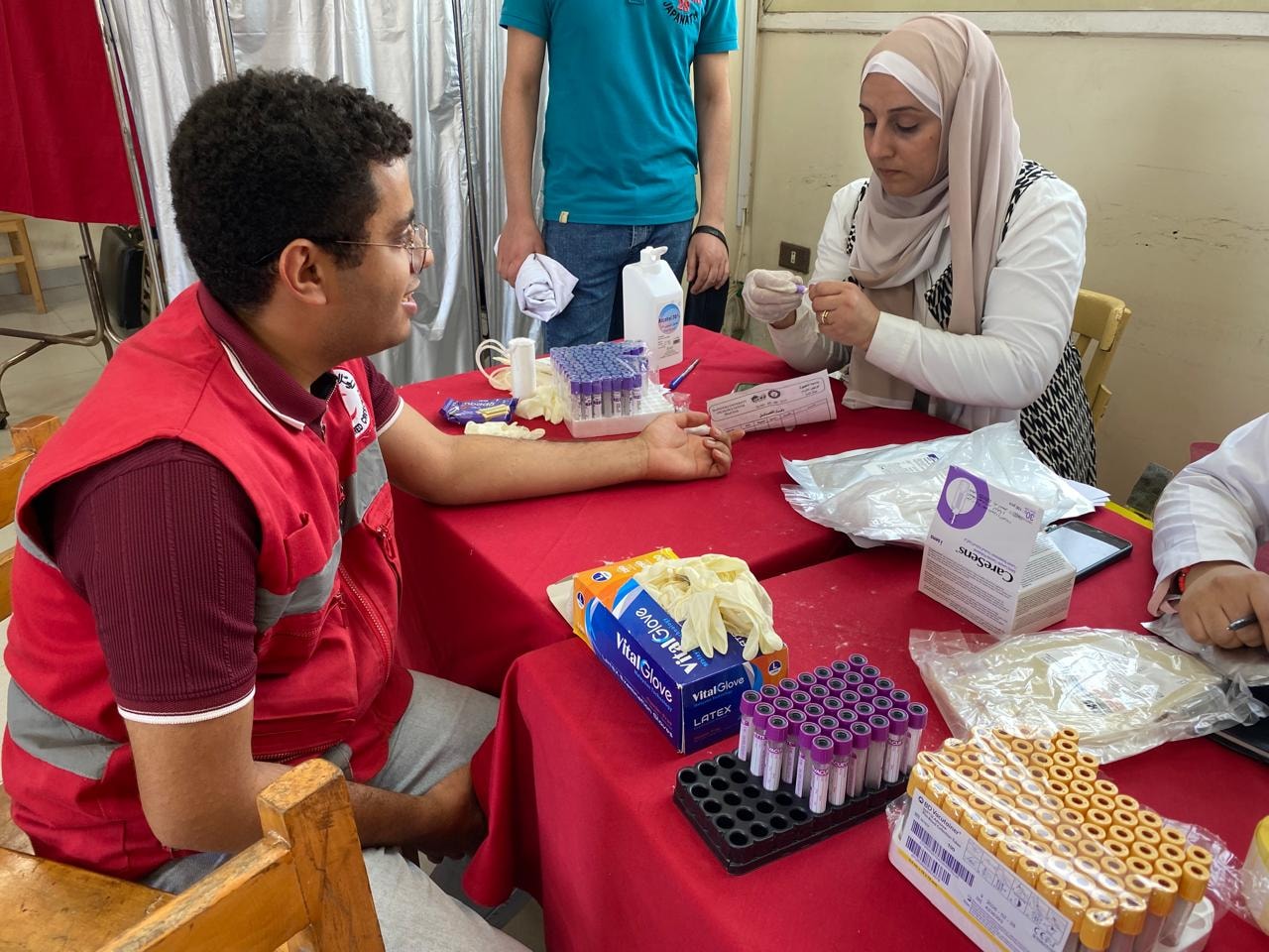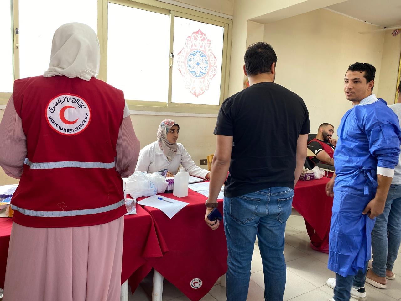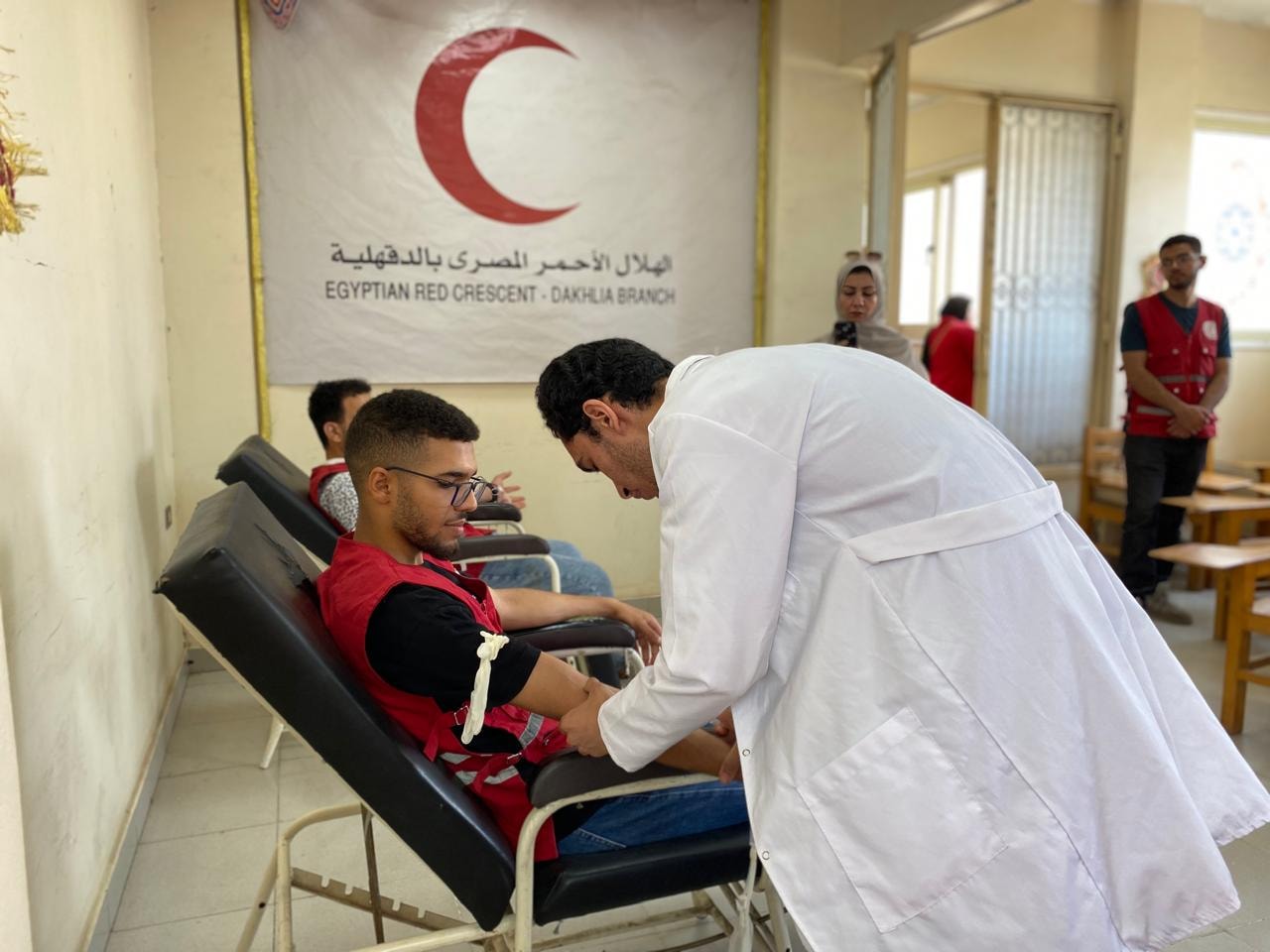 نظم قطاع شئون خدمه المجتمع وتنميه البيئه بالتعاون مع طلاب كليه طب المنصوره من متطوعي الهلال الأحمر