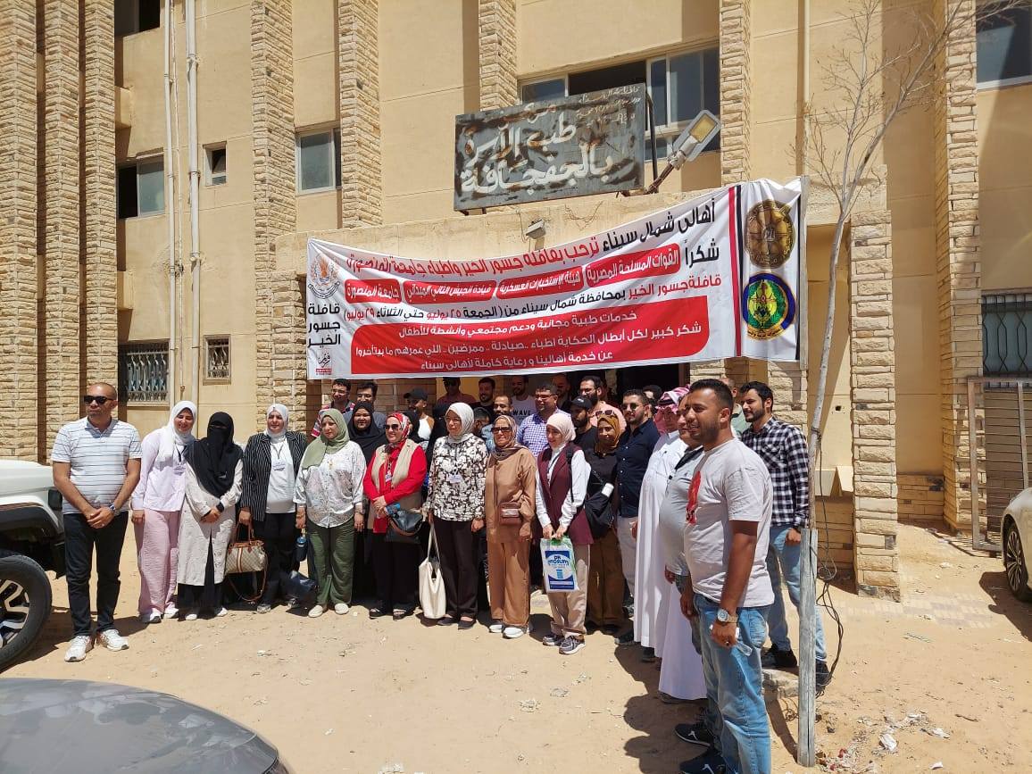 وشهد اليوم الأول للقافلة تنفيذ مجموعة من الفعاليات الطبية والتوعوية والتعليمية بمدينة العريش، ففي القطاع الطبي، قدَّم الفريق الطبي خدمات الكشف على عدد كبير من المرضى في 14 تخصصًا طبيًّا، وشملت الفعاليات الطبية زيارات ميدانية لمدن الشيخ زويد والعريش والجفجافة، حيث قُدِّمت خدمات الكشف والعلاج في تخصصات الأسنان، والقلب، والجلدية، وأمراض الكلى، والعيون، والروماتيزم والمناعة، والأنف والأذن والحنجرة، وجراحة المسالك البولية، والتخدير، والأمراض النفسية والعصبية، والباطنة، والصدر، وطب الأطفال، بإجمالي أكثر من 460 كشفًا طبيًا، إلى جانب المرور على 35 حالة من مرضى الغسيل الكلوي بمدينة الشيخ زويد، وإجراء 10 عمليات جراحية كبرى بمستشفى العريش العام.
