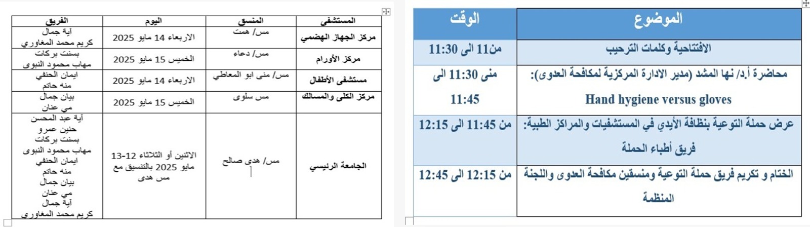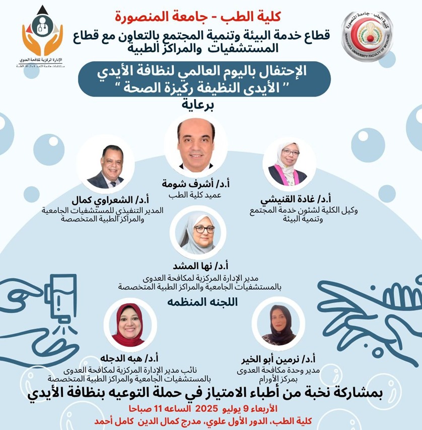 احتفالية الادارة المركزية لمكافحة العدوى باليوم العالمي لنظافة الأيدي بالتعاون مع قطاع شئون خدمة المجتمع وتنمية البيئة