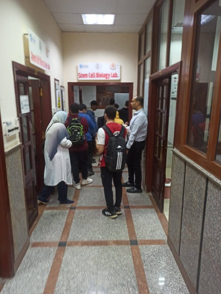 وفي مركز البحوث الطبية التجريبية استقبل الطلبة د/ مني وجيه الشربيني (زميل تحاليل طبيه – معمل الكيمياء الحيوية والبيولوجيا الجزيئية ) & د/ بسمه فتحي الجيوشي (أخصائي معمل - معمل الكيمياء الحيويه والبيولوجيا