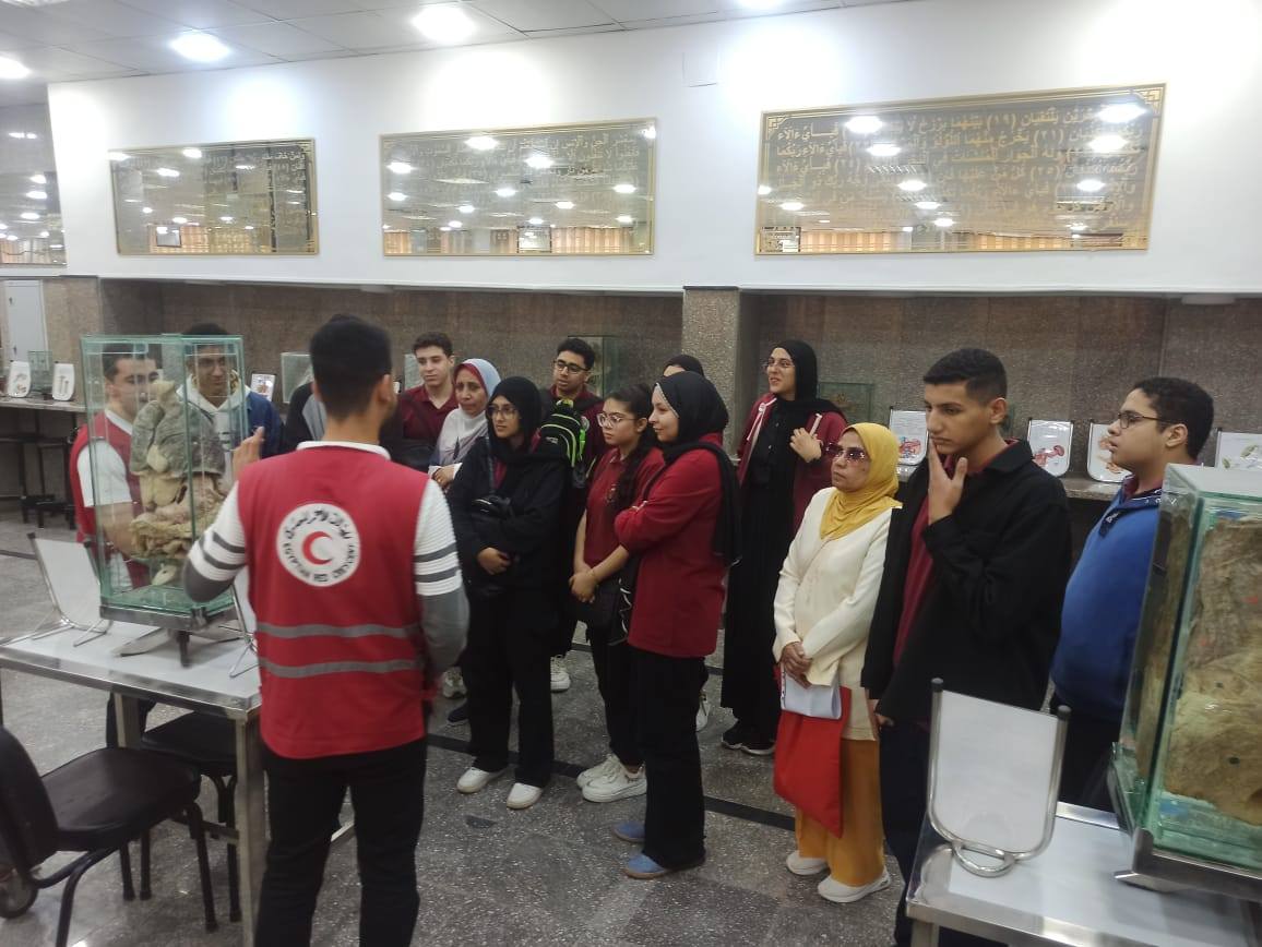 حيث تفقد الطلاب عينات المتحف الخاصه بأجزاء الجسم المختلفه والأجهزه الحيويه