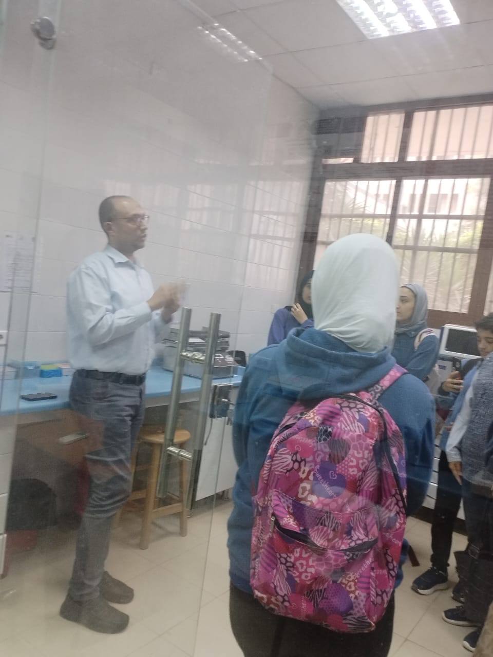 وقام بالتعريف بمركز البحوث ووحداته البحثية وإعطاء نبذه مختصره عن النشاط البحثي لكل وحدة وكذلك التعريف بمعمل الكيمياء والبيولوجيا الجزيئية والأجهزة المستخدمة وشرح لكيفيه إجراء اختبارات الكيمياء للعينات