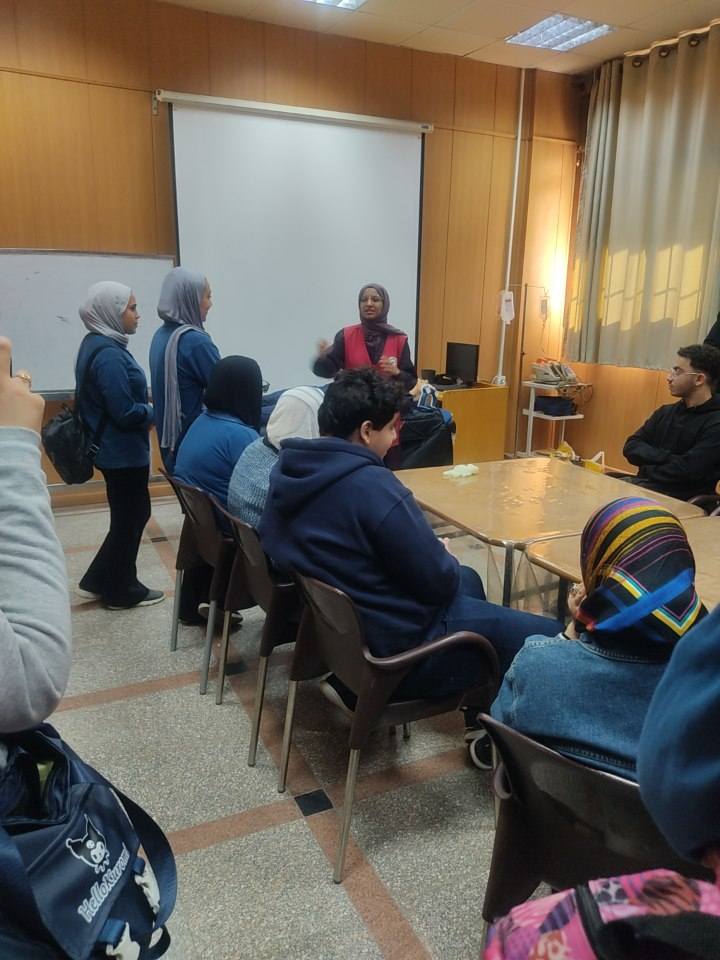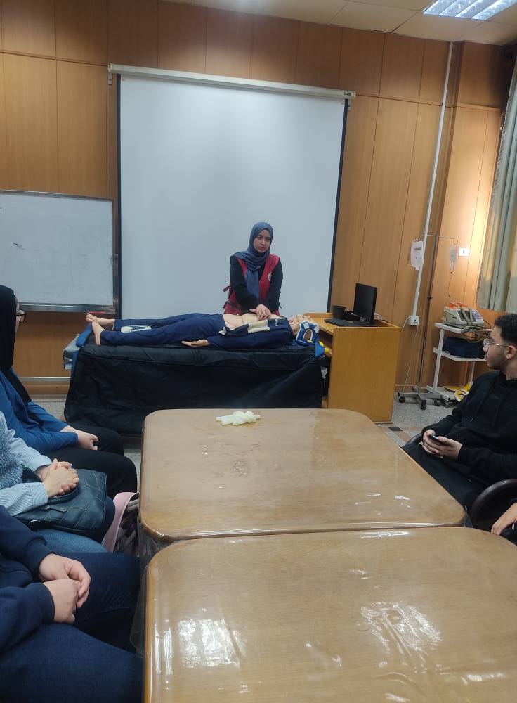 ربى زكريا احمد (أطباء الإمتياز ) تبع الشرح الإسعافات الأولية والمسح الأولي للميدان و وضعيه الافاقه والجروح والجبائر والتشنجات