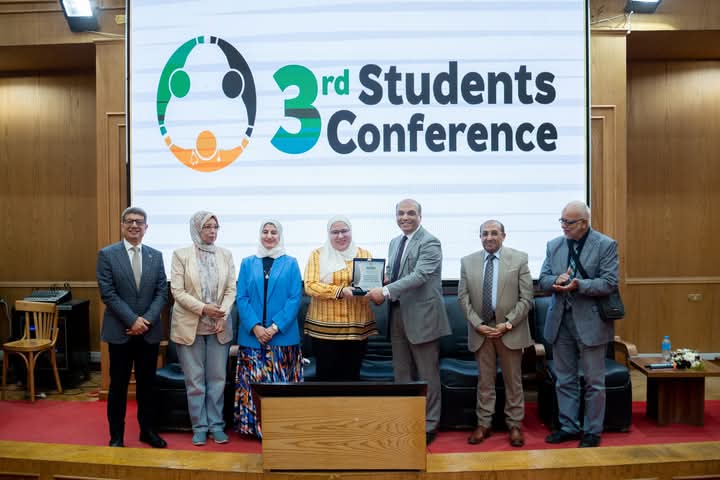 تكريم وحدة ضمان الجودة من سيادة العميد ا.د أشرف شومة و ووكيل الكلية ا.د/ بسمة شومان بالمؤتمر الطلابي الثالث للكليه في ١٧ مايو ٢٠٢٥