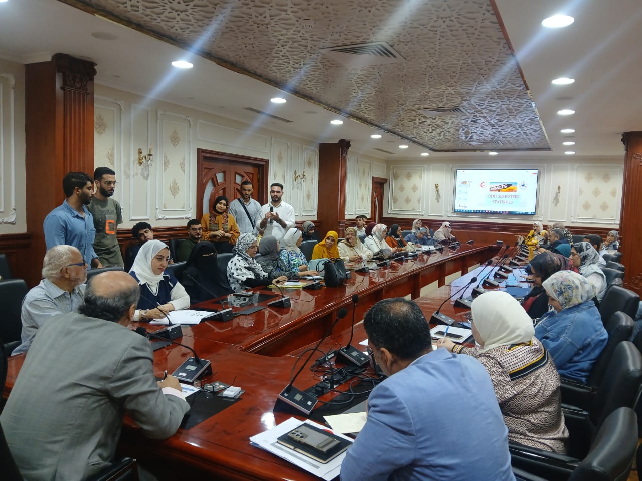 جلسه وحدة ضمان الجودة مع ادارة الكليه والاطراف المعنيه للبرنامج الاساسي ٥+٢ توطئه لبدايه العام الجامعي الجديد ٢٠٢٥/٢٠٢٦ في ٢٥ اغسطس ٢٠٢٥ بقاعه مجلس الكليه