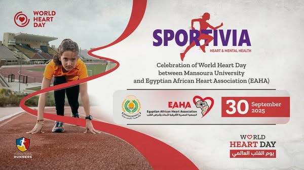 نظمت جامعة المنصورةماراثون اليوم العالمي للقلب، صباح اليوم الثلاثاء الموافق 30 سبتمبر 2025، بريادة الدكتور محمد عبد العظيم نائب رئيس الجامعة لشؤون خدمة المجتمع وتنمية البيئة، فعاليات ماراثون اليوم العالمي للقلب، بالتعاون مع الجمعية المصرية الأفريقية لأبحاث وأمراض القلب (Egyptian African Heart Association)، وبمشاركة فريق Mansoura Runners.