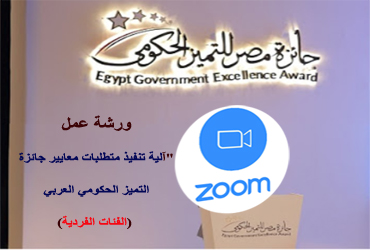 يسر إدارة جائزة مصر للتميز الحكومي دعوة سيادتكم للحضور والمشاركة في ورشة عمل "آلية تنفيذ متطلبات معايير جائزة التميز الحكومي العربي (الفئات الفردية)”