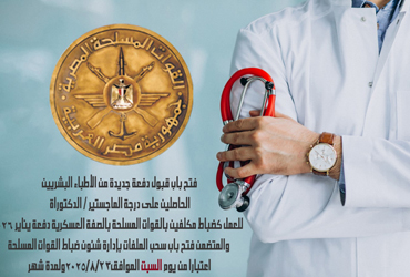 فتح باب قبول دفعة جديدة من الاطباء البشريين للعمل كضباط مكلفين بالقوات المسلحة2026
