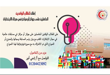 إعلان للطلاب الوافدين الحاصلين على جوائز أو مراكز في مجال الابتكارات