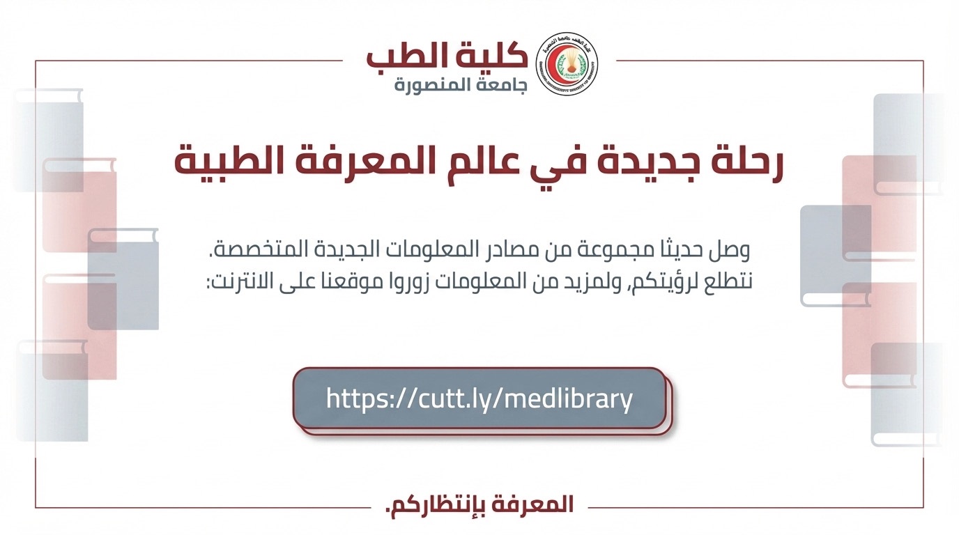 وصــل حديثا مجموعة من مصادر المعلومات الجديدة المتخصصة لمكتبة كلية الطب