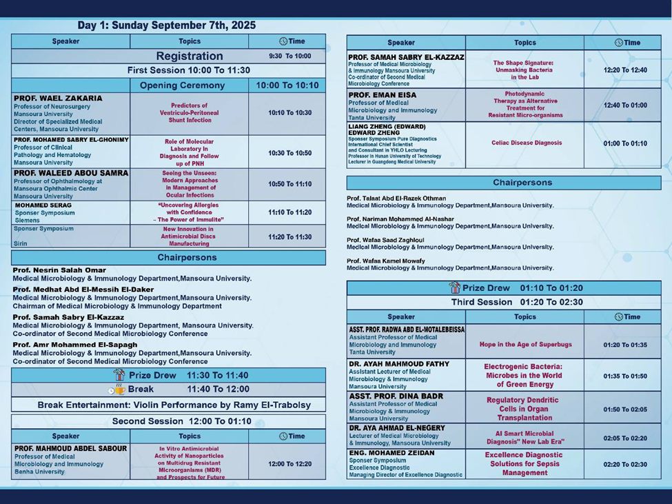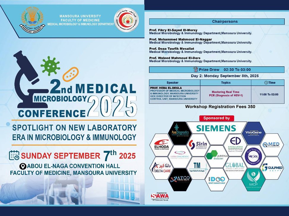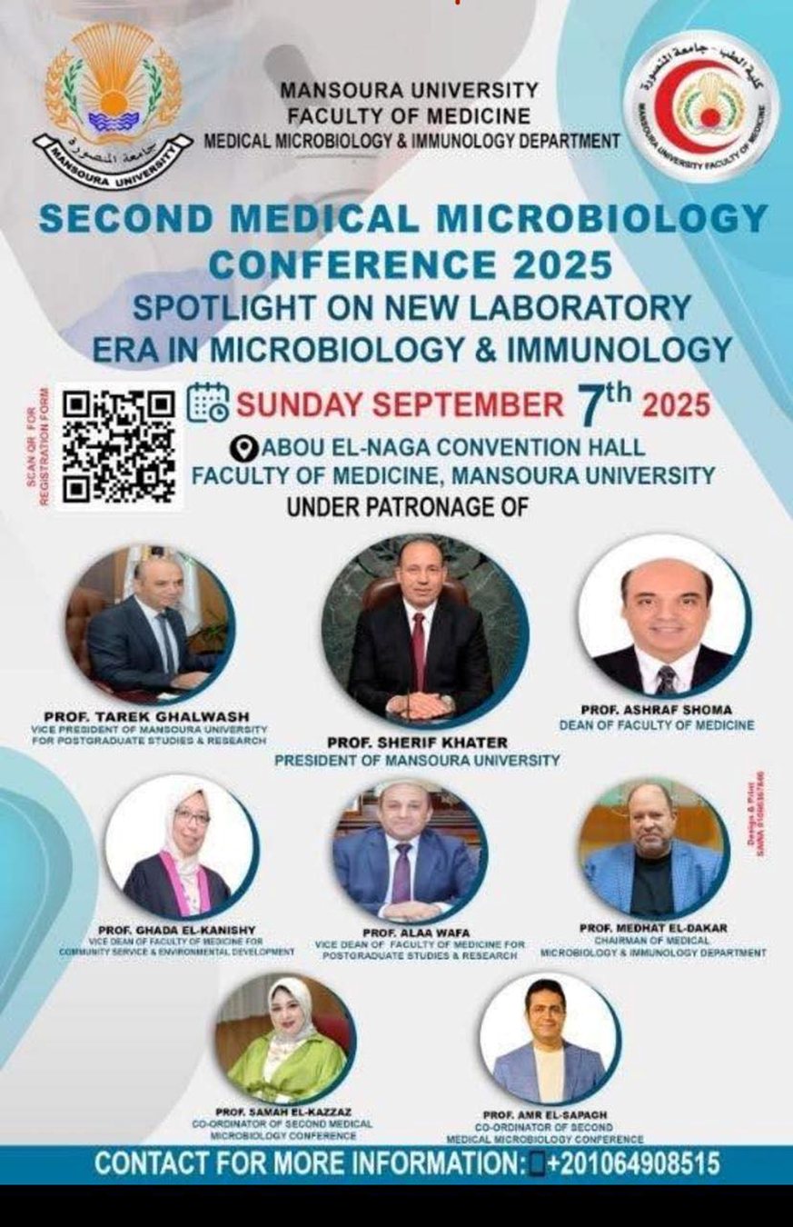 تحت رعاية الأستاذ الدكتور أشرف شومة عميد كلية طب المنصورة والأستاذ الدكتور مدحت الدكر رئيس قسم الميكروبيولوجيا والمناعة الطبية
