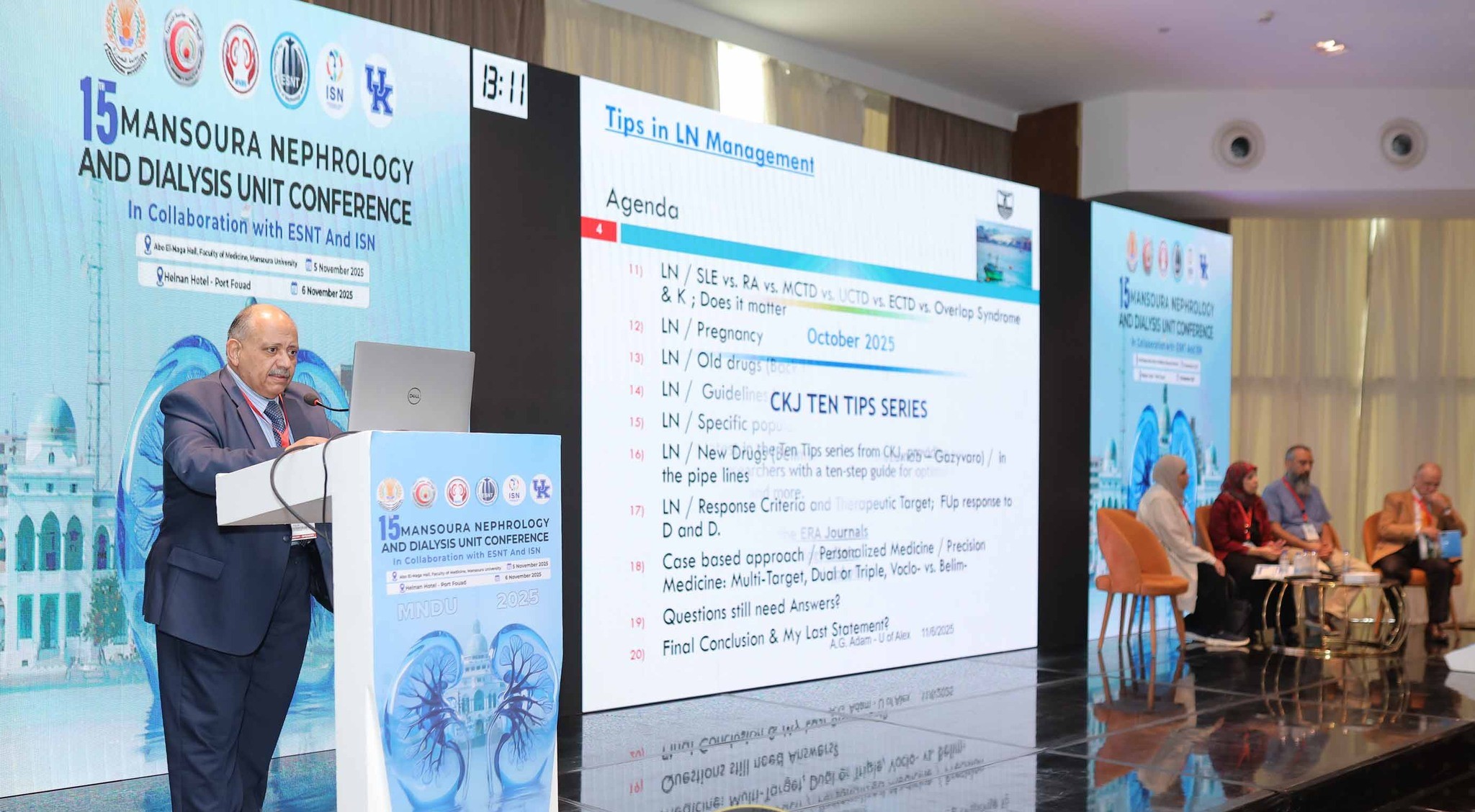 انعقد المؤتمر الخامس عشر لوحدة امراض الكلي والغسيل الكلوي يوم 5-11-2025 في مدج د أبو النجا بكلية الطب جامعة المنصورة بالتعاون مع