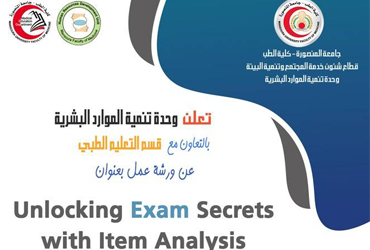ورشة عمل بعنوان:"دورة المهارات الجراحية الأساسية" لتدريب أطباء الامتياز خريجي كلية الطب جامعة المنصورة